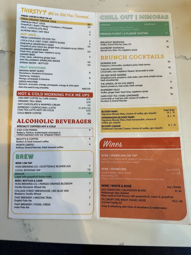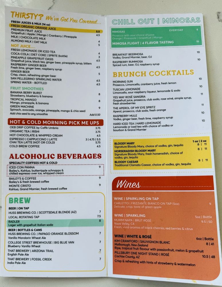 OEB Breakfast is a trendy and hip restaurant in Scottsdale, AZ, offering a diverse menu with options for breakfast, brunch, and lunch. They provide a unique dining experience with breakfast cocktails and a delightful mimosa flight. Customers rave about dishes like the Chilaquiles and French Toast with berries, praising the flavorful sauces and generous portions. The service is top-notch, with friendly and efficient staff, making each visit a winner. The Soul in a Bowl and Gnocchi Breakfast Carbonara are standout dishes that leave a lasting impression. While the menu leans towards high-end and hearty fare, customers appreciate the varied options and well-cooked meals. OEB Breakfast is a must-visit for those looking for a delicious and satisfying dining experience.
